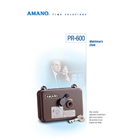 The Amano PR-600/0365 is a watchman clock only for the Amano PR-600 system. The PR-600 restricts access to record tape and time by use of master key, allows registration of each watchman's ID prior to each patrol route and lock box available to prevent loss of station keys.