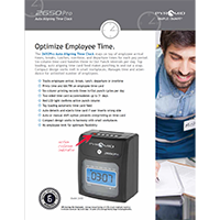The Pyramid 2650 Pro is a top-loading, non-calculating time clock. Six-column time card handles three In/Out Punch intervals per day. Two-sided time card accommodates up to 31 days. Top loading, auto aligning time card feed makes punching in and out a snap. Compact design works well in small workplaces. Manages time and attendance for unlimited number of employees.